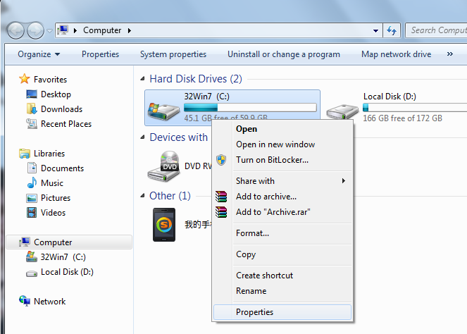 Bước 1: Nhấn chuột phải vào ổ đĩa cần chống phân mảnh và chọn Properties